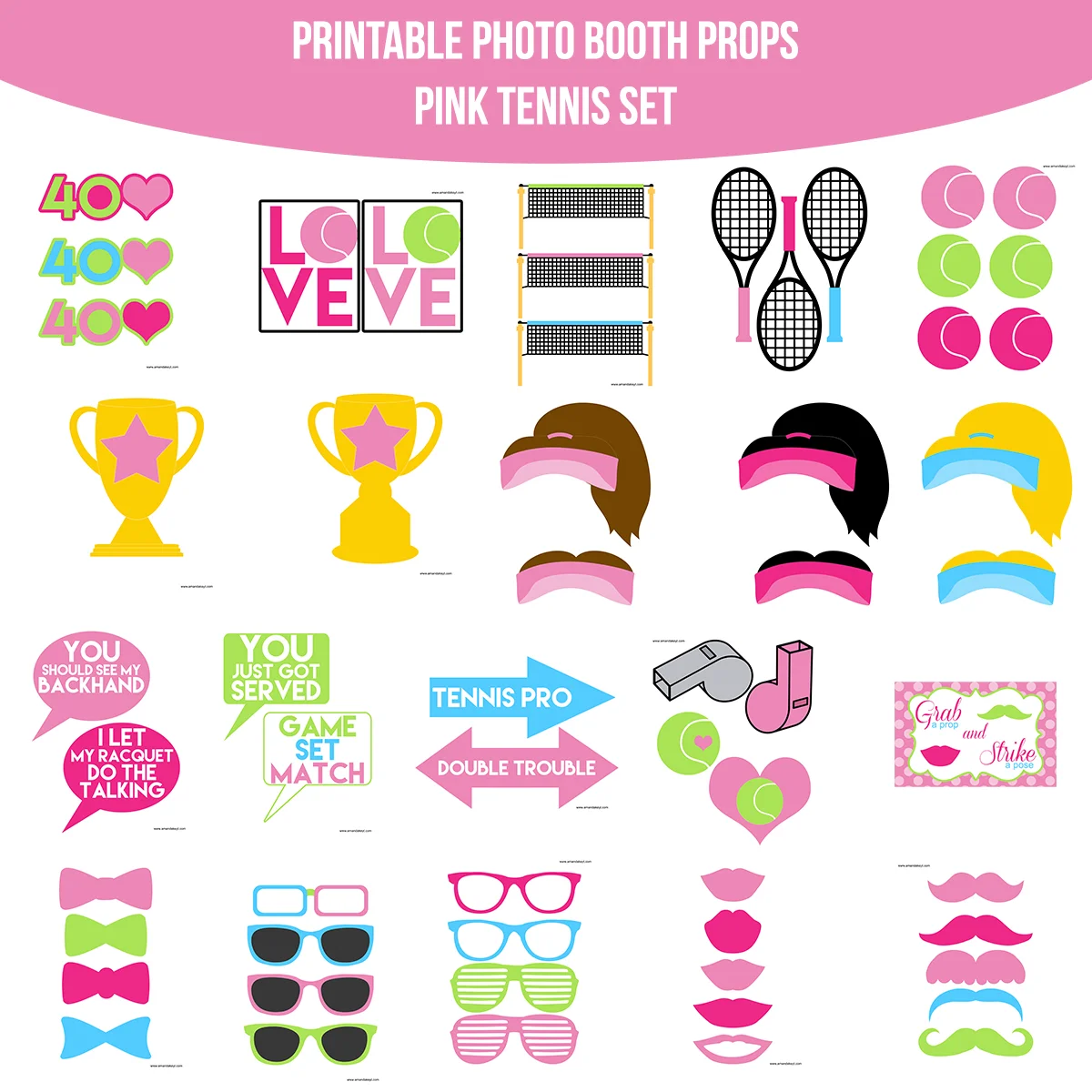 Pink Tennis Printable Photo Booth Prop Set