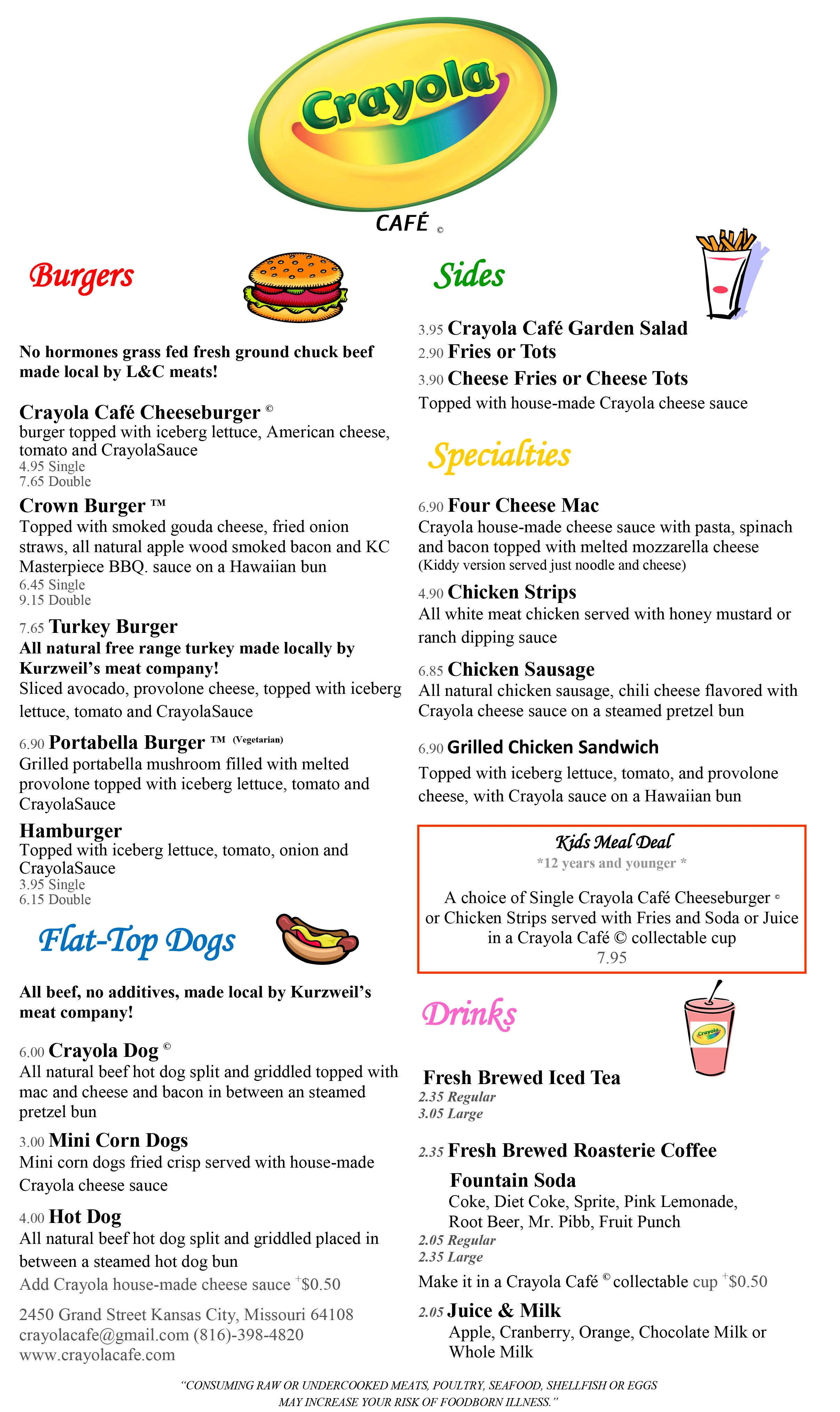 Crayola Experience Orlando, FL CAFE CRAYOLA Menu courtesy of cafecrayola.com
