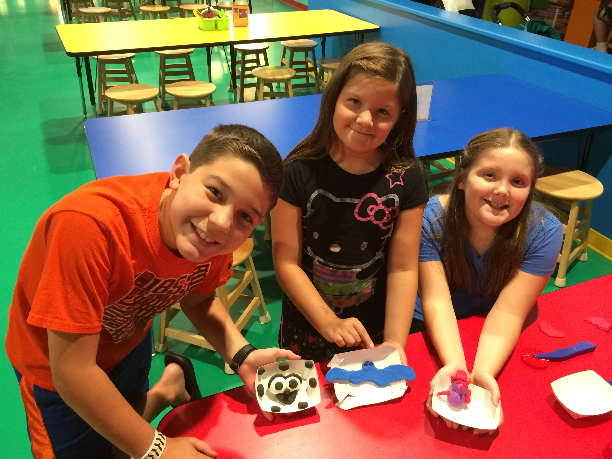 At MODELING MADNESS you can use a Crayola token to purchase model magic clay. Just walk up to the clay vending machine, choose the color you want and press the coordinating buttons to purchase the clay. Then you pick a table to sit at and work on your creations. On the table there are complimentary tools to use to roll, cut and shape your clay.