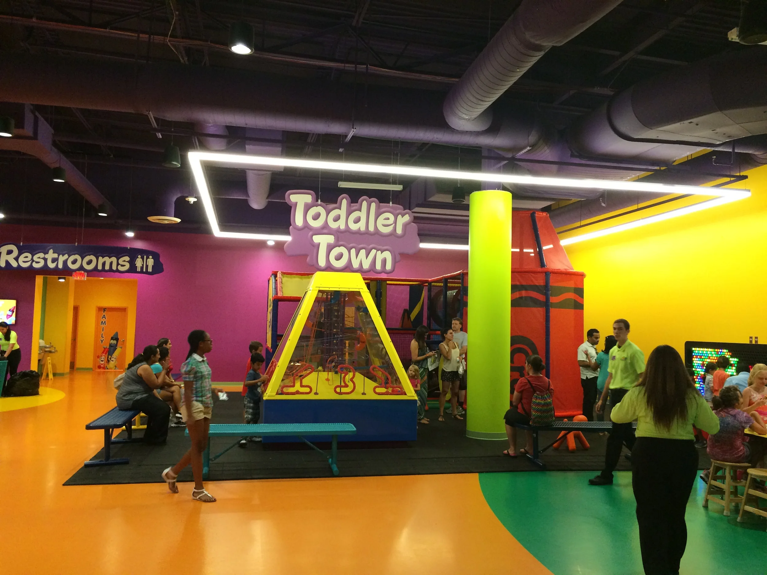 At TODDLER TOWN children ages 1-3 can play and enjoy the smaller sized play area. There is a fun ball drop activity, little dog chairs, and a jumbo lite brite wall that is sure to keep toddlers entertained!